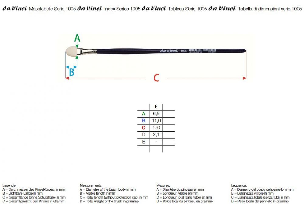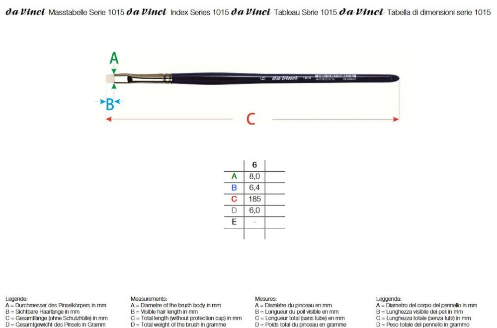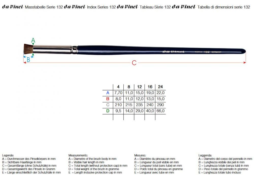 Il Set 4232 contiene pennelli per pastelli nelle seguenti misure: