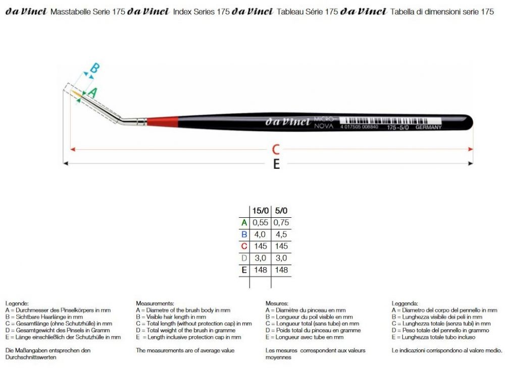 Pennello in fibra sintetica DA VINCI - MICRO NOVA 175 angolato - MISURA 5/0 https://www.aerografoshop.it/images/repository/prodotti/DAVINCI/175.jpg Il tesoro dell'esperienza e competenza nella fabbricazione di pennelli per belle arti, di cui l'azienda da Vinci dispone, si basa ... da Vinci PENNELLI > PENNELLI DA VINCI > PENNELLI SINGOLI DA VINCI new 175-5/0