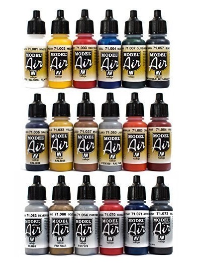 Set di colori Model Color per modellismo e miniature. Il set contiene n.18 flaconi da 17 ml nei seguenti colori: 71001 WHITE 71002 YELLOW 71003 SCARLET RED 71004 BLUE 71007 OLIVE GREEN 71057 BLACK 71005 INTERMEDIATE BLUE 71033 OCHRE 71037 MUD BROWN 71050 LIGHT GREY 71083 ORANGE 71084 FIRE RED 71063 SILVER 71064 CHROME 71066 GOLD 71070 TURN SIGNAL RED METAL 71071 ARTIC BLUE METAL 71073 BLACK METAL Recensioni