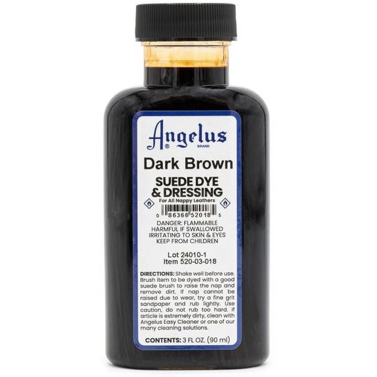 Home Page » Catalogo » Colori » Colori per pelle, cuoio e tessuti » Colori Angelus SUEDE DYE (a base alcolica) » ANGELUS SUEDE DYE Colore per pelle scamosciata - DARK BROWN 88,5 ML