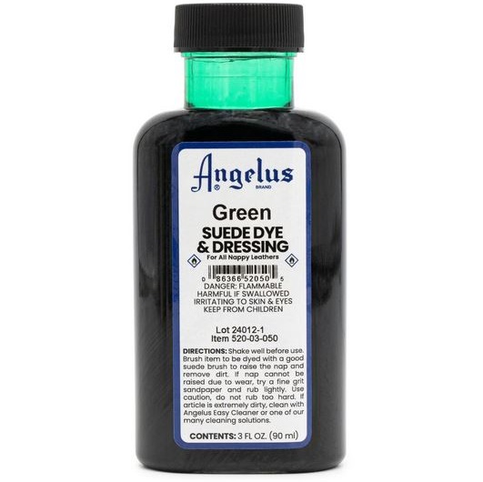 Home Page » Catalogo » Colori » Colori per pelle, cuoio e tessuti » Colori Angelus SUEDE DYE (a base alcolica) » ANGELUS SUEDE DYE Colore per pelle scamosciata - GREEN 88,5 ML