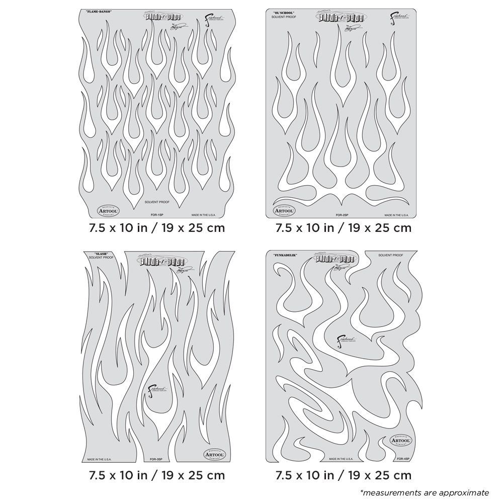 Home Page » Catalogo » Stencils » Fiamme » 4 Stencils aerografo ARTOOL "Flame -o-Rama" by C. Fraser