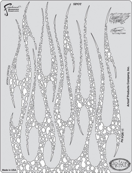 FHFOR11 - FLAME O RAMA 2 "Spot" Stencil Artool Freehand Airbrush Templates by Craig Fraser La confezione contiene 1 Stencil FHFOR11 Flame o Rama 2 "Spot" by Craig Fraser Dimensione : 20 x 26,5 cm . Recensioni