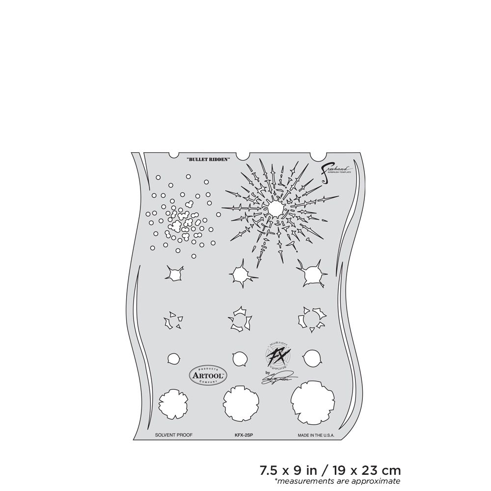Home Page » Catalogo » Stencils » Textures » Stencil aerografo Artool Kustom Fx "Bullet Ridden" by C. Fraser