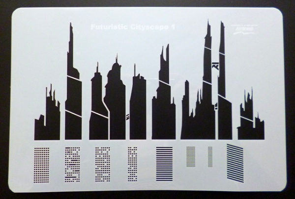 Home Page » Catalogo » Stencils » Paesaggi » Stencil aerografo 61x96 "Futuristic Cityscape 1" Harder