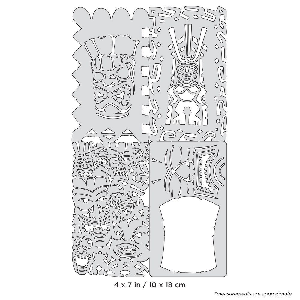 Home Page » Catalogo » Stencils » Tiki » 4 stencils aerografo ARTOOL "Tikiville" Nano Series