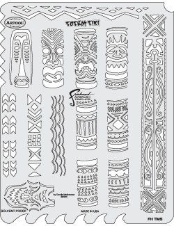 FHTM5 - TIKI MASTER "TOTEM TIKI" - Stencil Artool Freehand Airbrush Templates By Dennis Mathewson La confezione contiene n.1 Stencil FHTM5 Tiki Master "Totem Tiki" by Dennis Mathewson. Dimensioni : 20 x 25,5 cm. Gli stencils Artool offrono innumerevoli vantaggi agli aerografisti; sono resistenti ai solventi, si adattano perfettamente alle superfici irregolari e si puliscono facilmente poichè resistenti ai solventi. Recensioni