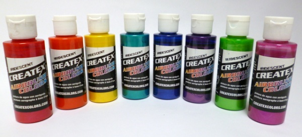 Kit composto da 8 colori iridescenti CREATEX per aerografo. Il set contiene 8 flaconi ciascuno da 60 ML nei seguenti colori: 5501 CREATEX IRID. RED 5502 CREATEX IRID. SCARLET 5503 CREATEX IRID IRID. YELLOW 5504 CREATEX IRID. TURQUOISE 5505 CREATEX IRID. ELECTRIC BLUE 5506 CREATEX IRID. VIOLET 5507 CREATEX IRID.GREEN 5508 CREATEX IRID. FUCHSIA I colori IRIDESCENTI CREATEX, sono adatti per utilizzo su tutti i tipi di superfici. Hanno vividi bagliori cangianti che variano secondo l'inclinazione della luce. I colori CREATEX sono colori specifici per l' aerografia: di alto livello professionale, a base di acqua e pronti all'uso, molto versatili ed adatti a tutte le superfici, eccellenti su tessuto, pelle, legno, ceramica, terracotta e materiali porosi. Sono disponibili in una gamma di oltre settanta colori (trasparenti, coprenti, fluorescenti, iridiscenti e perlati) che offrono un'ampia scelta di finiture e sono completi di additivi che consentono agli artisti di personalizzare i propri colori per specifiche applicazioni. Tutti i colori CREATEX sono non tossici e conformi agli standard ASTM D-4236.I colori Createx, Wicked, Auto Air e Illustration possono essere diluiti con l'High Performance Reducer.