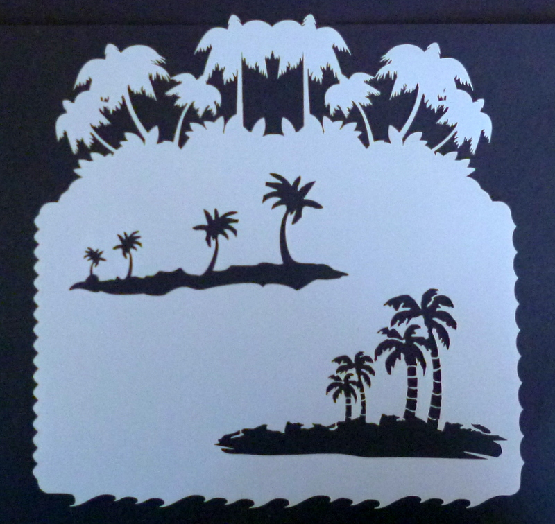 La confezione contiene n.1 stencil Palm Trees, che rappresenta delle realistiche immagini di gruppi di palme.