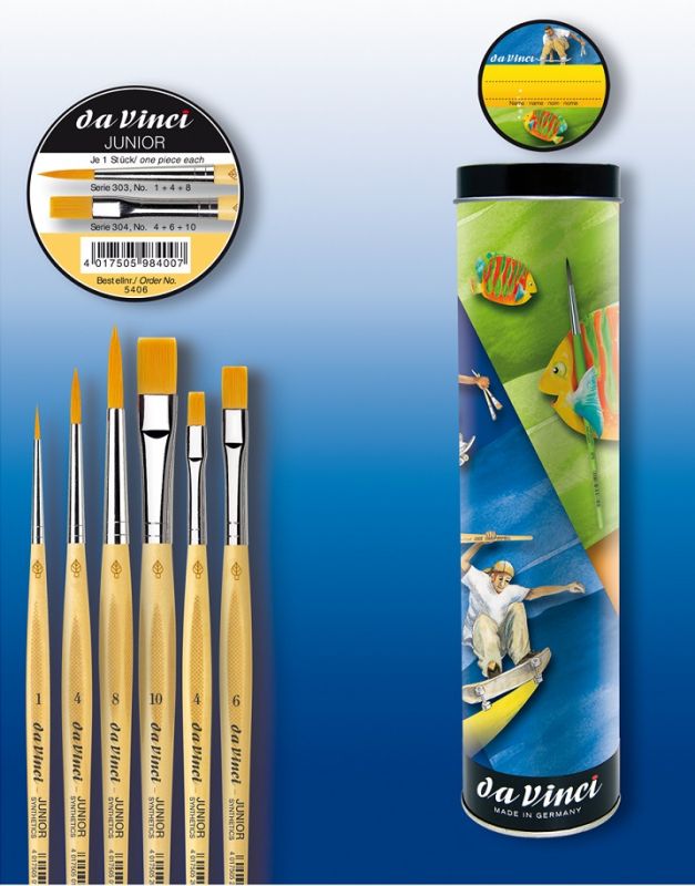 Home Page » Catalogo » PENNELLI » PENNELLI DA VINCI » SET PENNELLI DA VINCI » Set 6 pennelli in fibra sintetica DA VINCI - JUNIOR - linea Scuola e Hobby