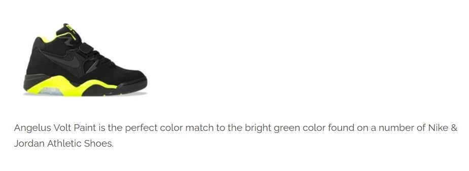 Angelus Paint è un colore acrilico che può essere utilizzato su qualsiasi superficie in pelle, tessuto, canvas, tessuto a rete e molto altro. Ha una formula che lo rende flessibile, autolivellante e non fessurato, aderisce perfettamente alle superfici preparate correttamente con Angelus Deglazer. Non è adatto alla suola delle scarpe. Può essere spruzzato con aerografo con ago da 0.5 mm e per misure inferiori è consigliabile miscelare il colore con il 2-THIN Per le superfici di plastica dura e per favorire l'adesione del colore utilizzare il 2-HARD Per rendere il colore più morbido e lavabile su stoffa utilizzare il 2-SOFT Può essere steso anche con pennello con setola sintetica. Per ottenere un effetto opaco, miscelare con Angelus Duller. E' consigliato l'utilizzo di un trasparente finale per ottenere un rivestimento protettivo. Recensioni